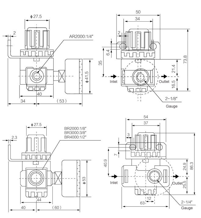 .Airtac type AR2000 BR2000 BR3000 BR4000 pneumatic air regulator is designed with delicate and compact, which is convenient for installation and application.