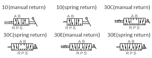 .4H310 hand lever valve is Manual return operated valve and 4HA210 pneumatic solenoid valve is spring retun hand control valve