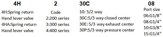 .4H410 hand lever valve is Manual return operated valve and 4HA210 pneumatic solenoid valve is spring retun hand control valve